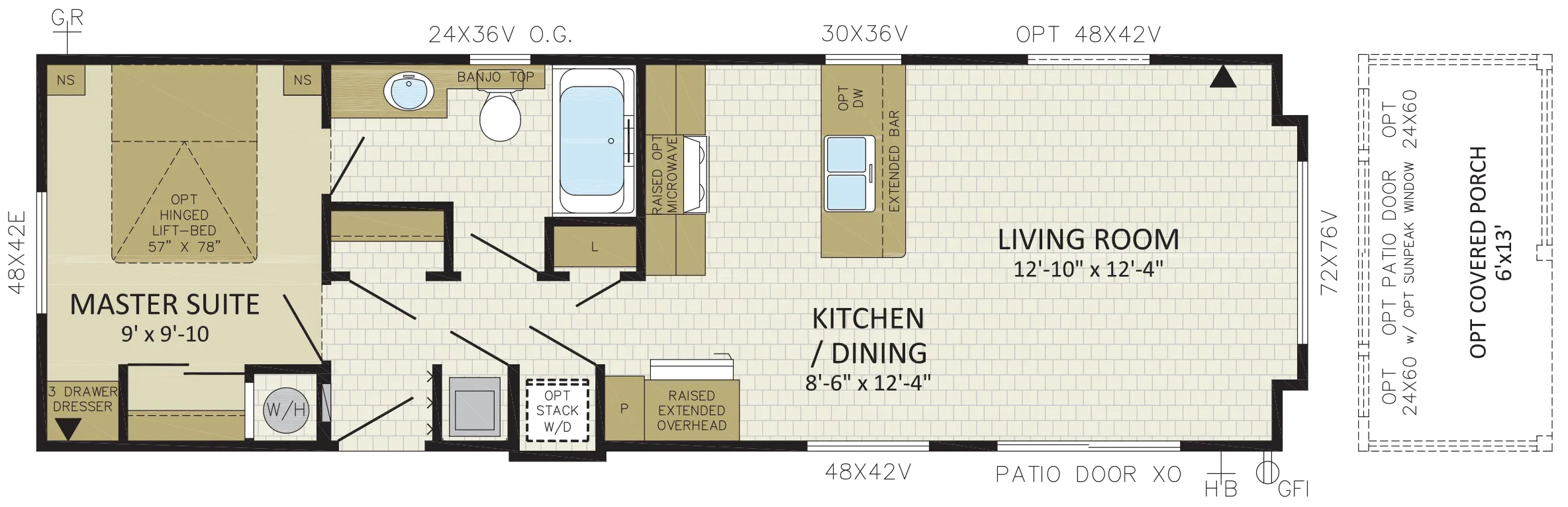- Doors: Patio Door & 36" 2 Panel (select models) Decorative Coach Light at entrances (excluding porch)