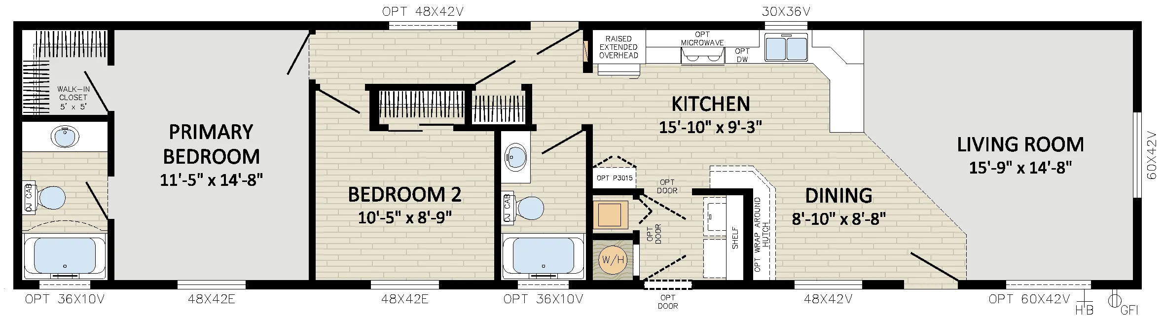 - Windows: Double Low-E, Argon, PVC w/ Vinyl sills. Cordless Cellular Shades (excludes obscured & transoms)