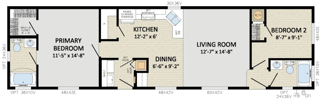 • Front Door: 36" 2-Panel Insulated with dead bolt and peep hole