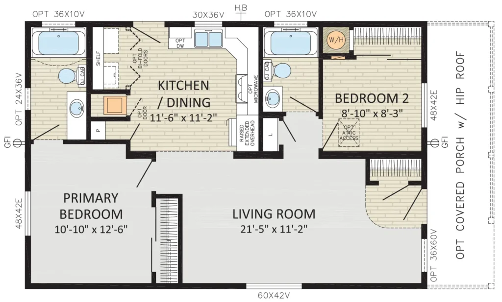 - Front Door: 36" 2-Panel Insulated with dead bolt and peep hole