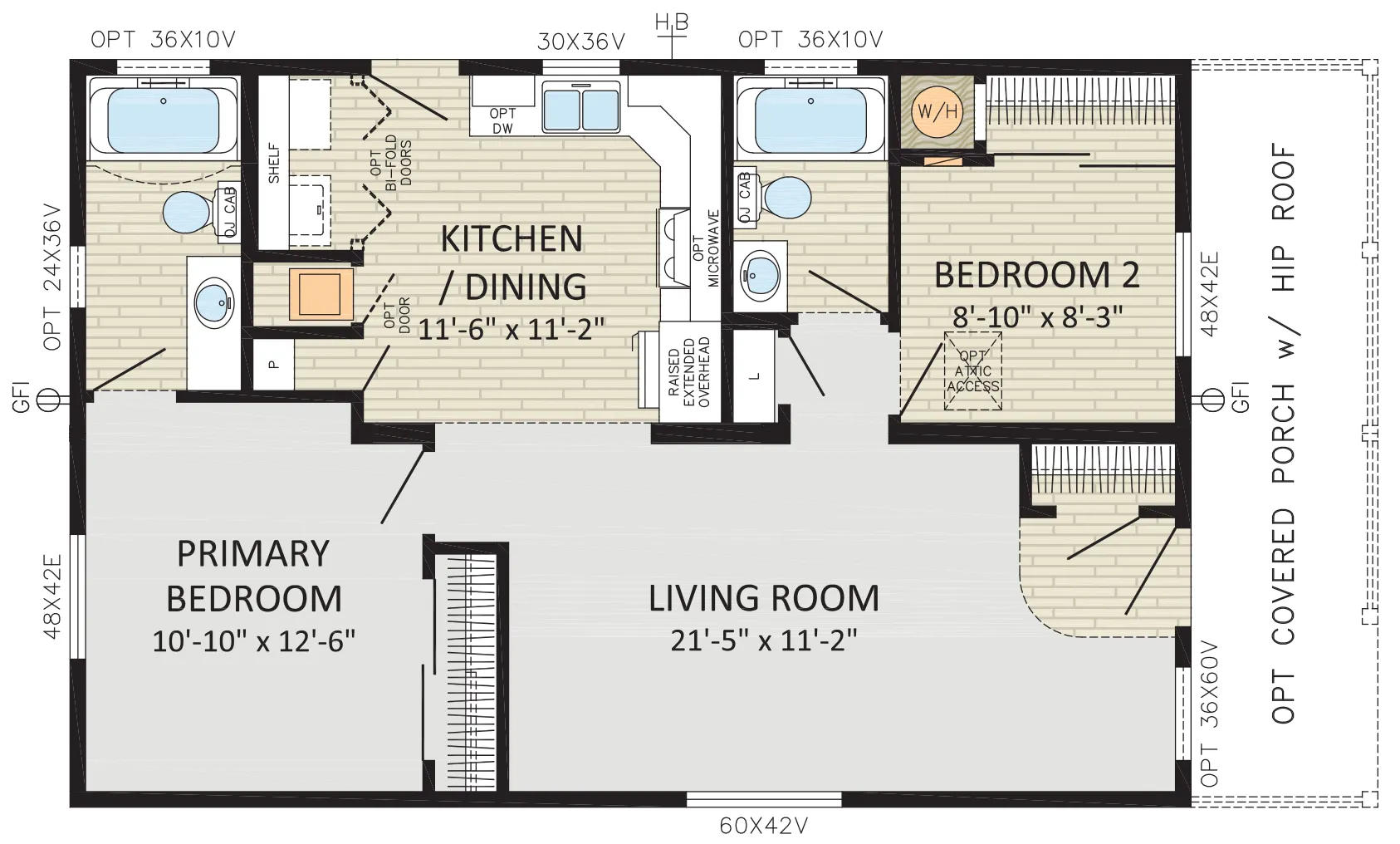- Eaves: 12" Perimeter Fixed
