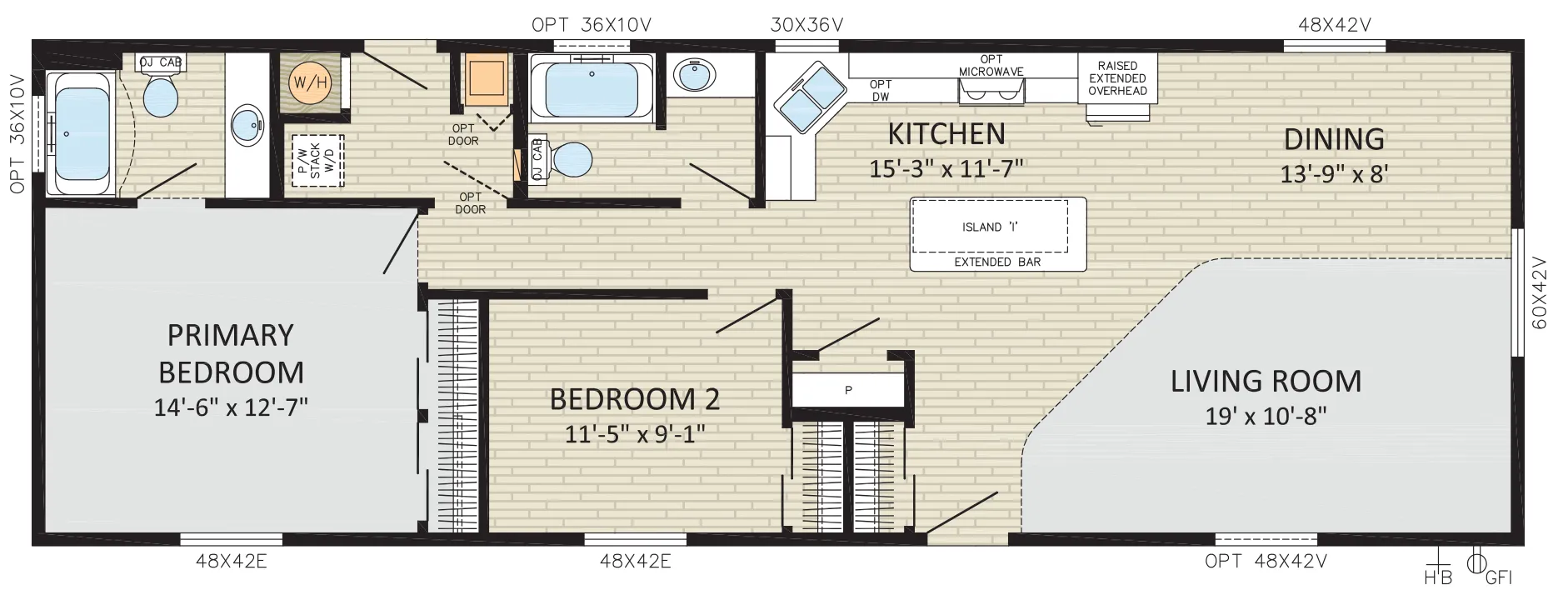 • Front Door: 36" 2-Panel Insulated with dead bolt and peep hole