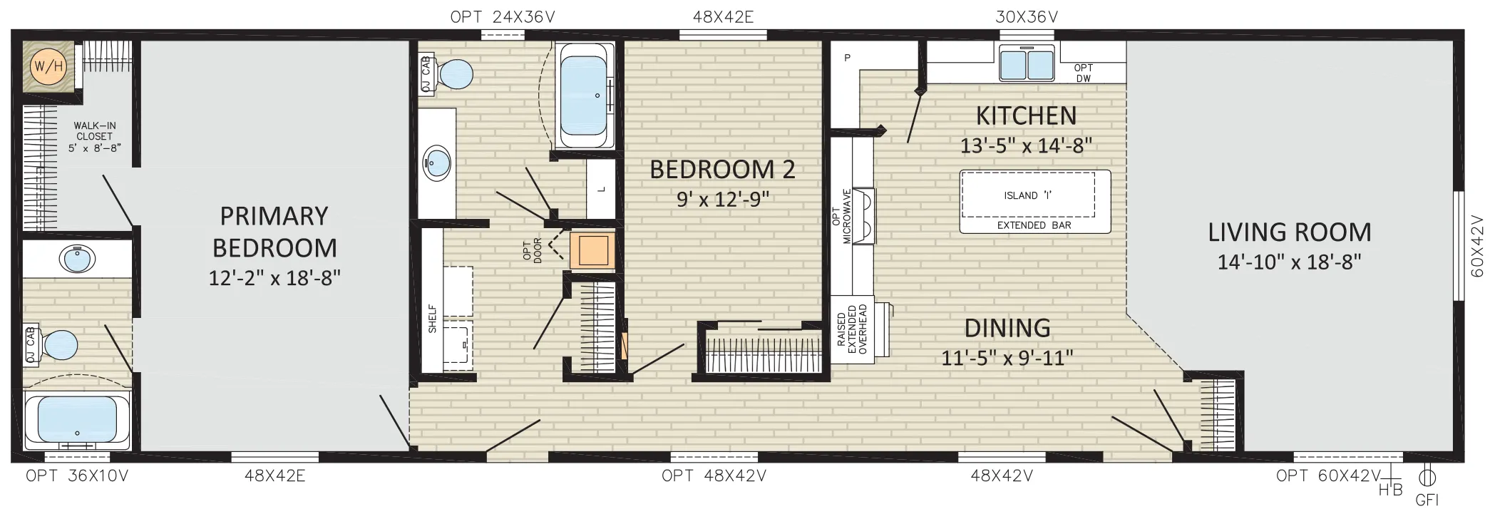 - Windows: Double Low-E, Argon, PVC w/ Vinyl sills. Cordless Cellular Shades (excludes obscured & transoms)