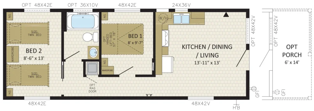 - Doors: Patio Door & 36" 2 Panel (select models) Decorative Coach Light at entrances (excluding porch)