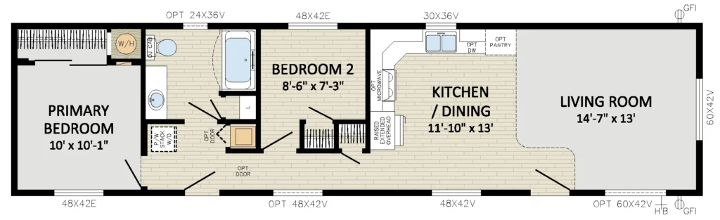 - Windows: Double Low-E, Argon, PVC w/ Vinyl sills. Cordless Cellular Shades (excludes obscured & transoms)
