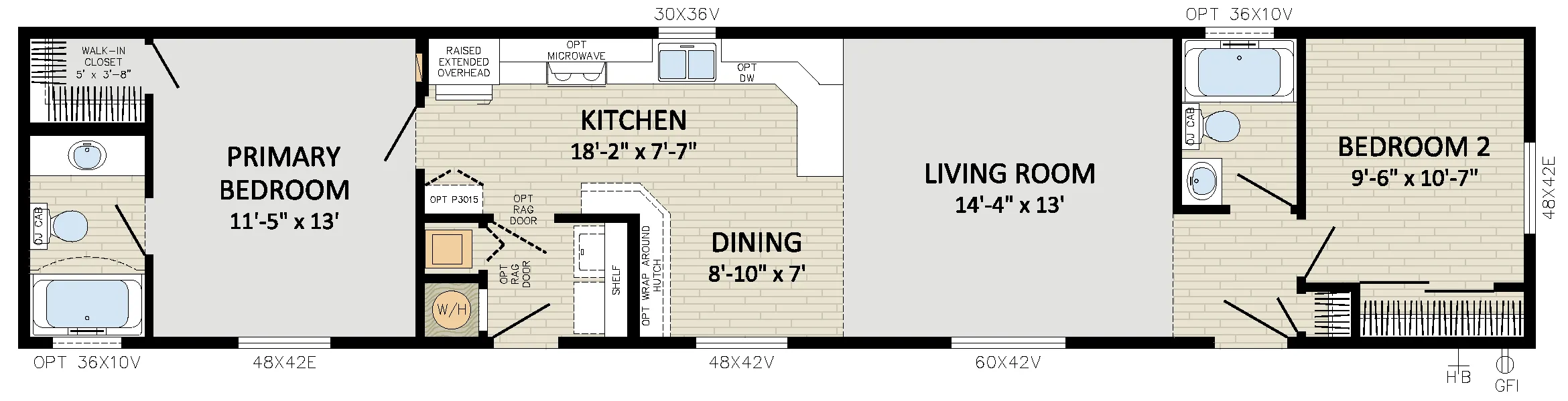 - Front Door: 36" 2-Panel Insulated with dead bolt and peep hole