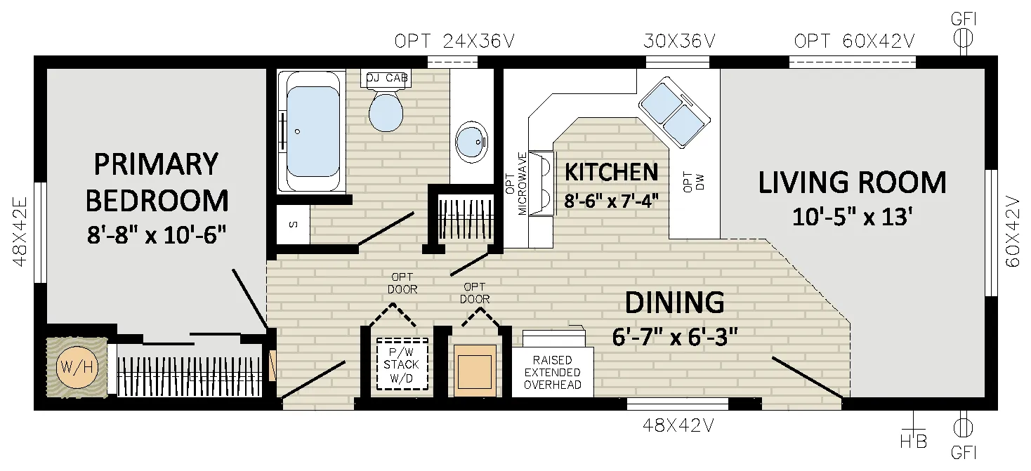 • Windows: Double Low-E, Argon, PVC w/ Vinyl sills. Cordless Cellular Shades (excludes obscured & transoms)