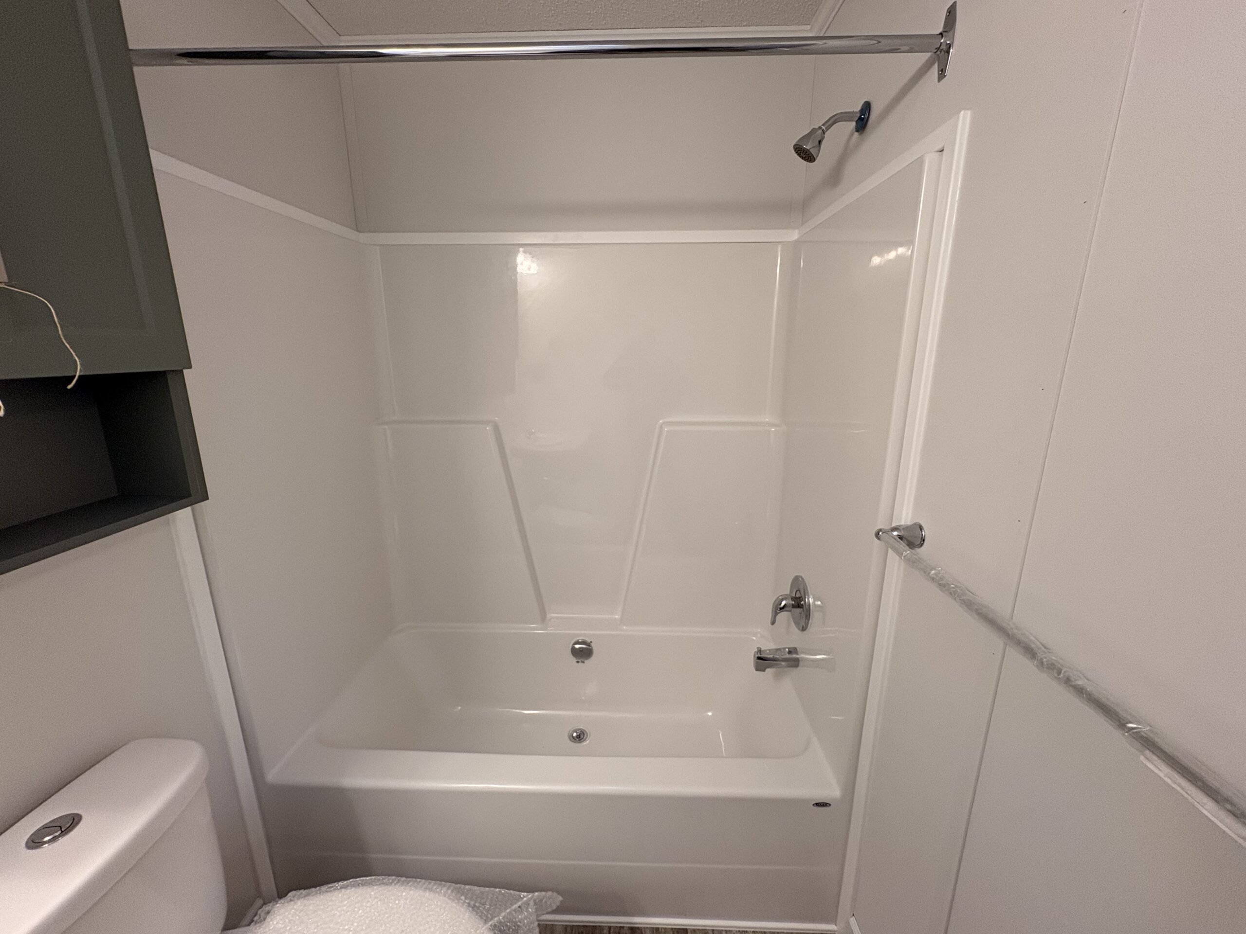 - One-Piece Fiberglass Tub/Shower with Single Lever Faucet