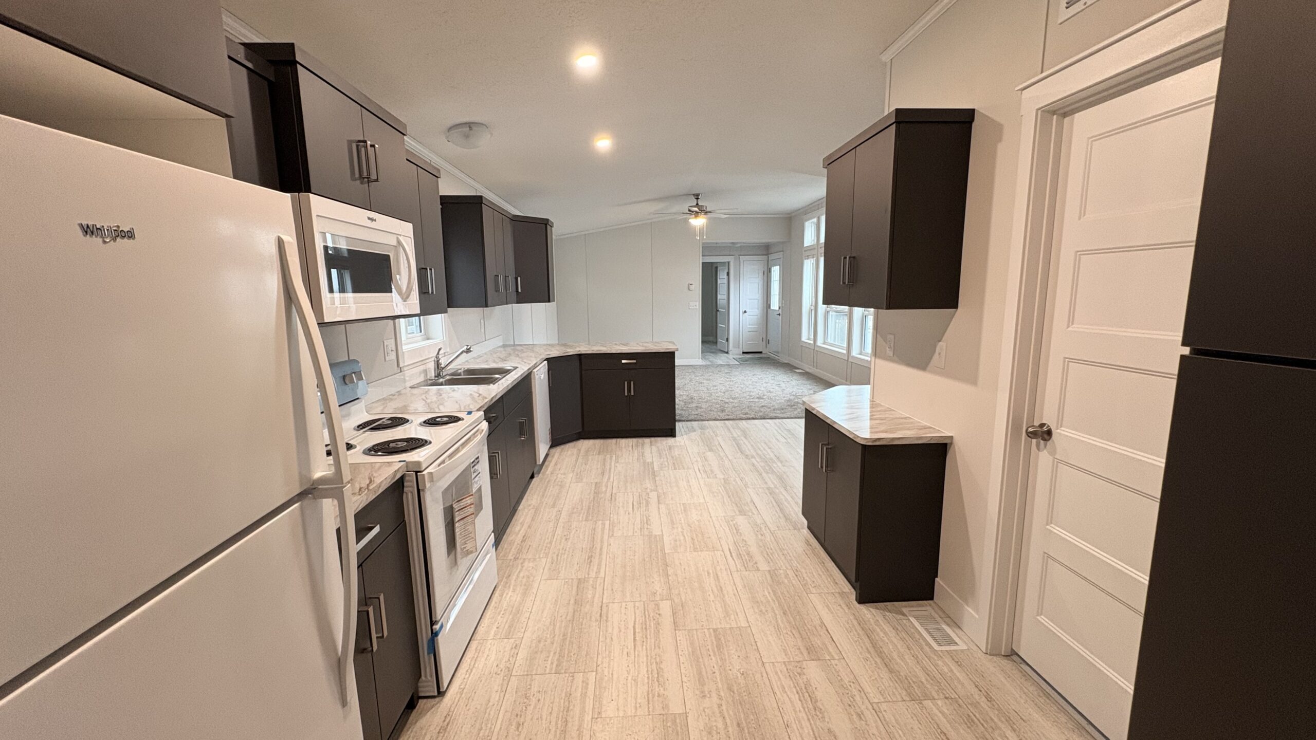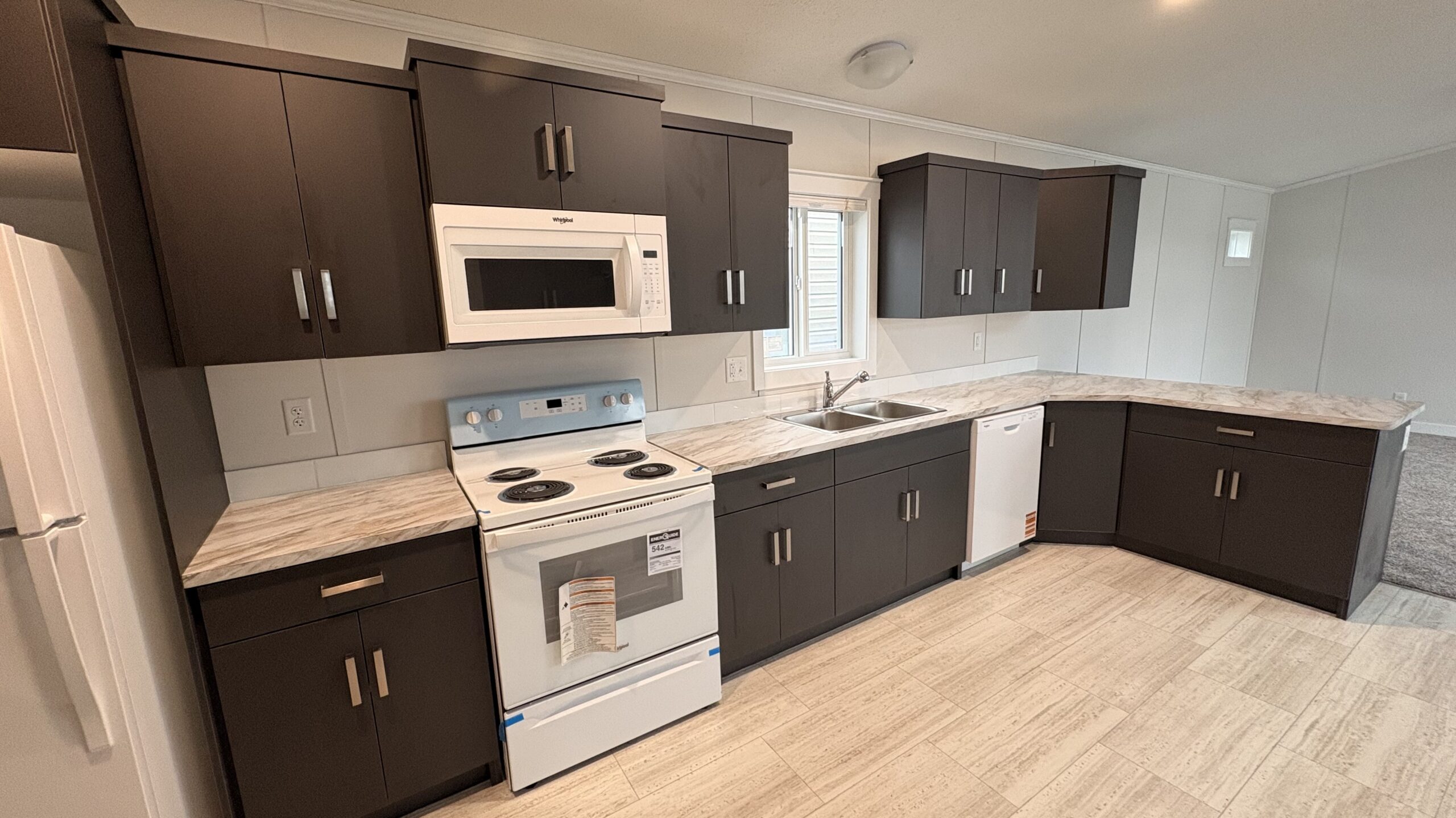 - Fridge, coiled top range, dishwasher, microwave range hood fan