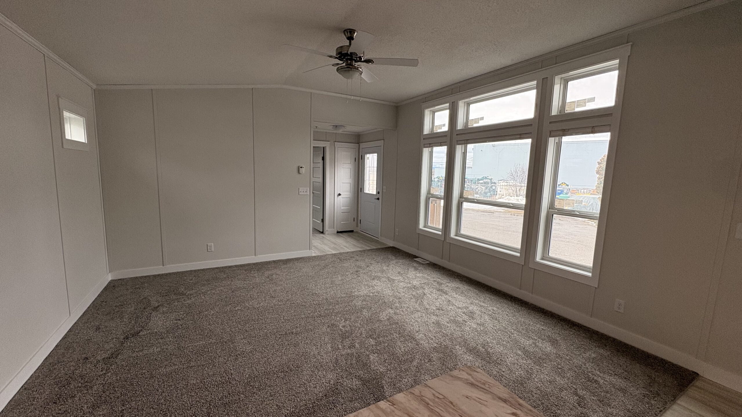 - Front Door: 36" 2-Panel Insulated with dead bolt and peep hole